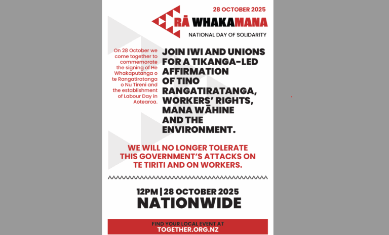 Iwi, unions, and activists are calling on Tangata Whenua and Tangata Tiriti to come together on the 28th of October…